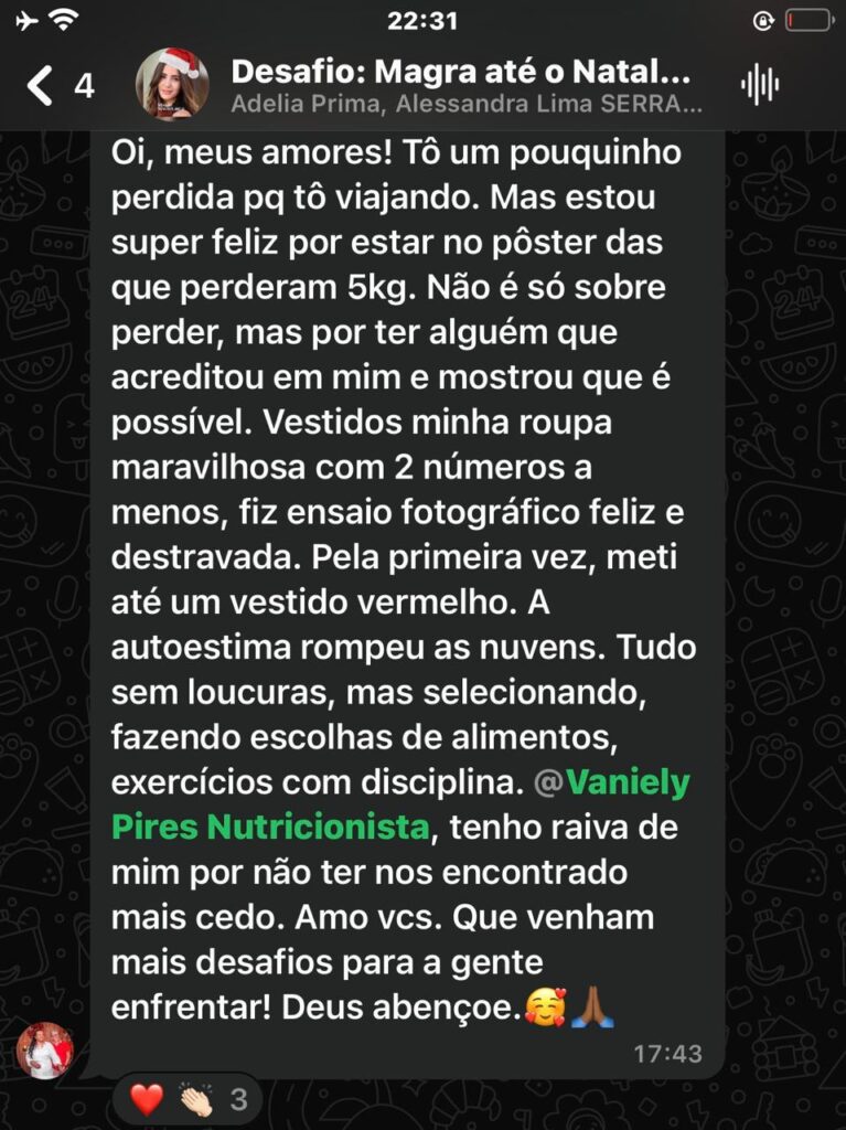 Não existe perfeição aqui. Existe processo. Se você seguir com constância, mesmo que não seja 100%, vai ter resultado. O desafio te ensina a sair do “tudo ou nada” e encontrar o equilíbrio real.
